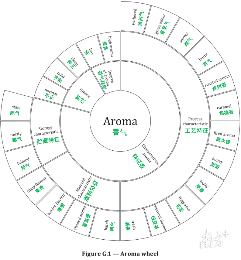 绿茶品类多、类别难辨,为更具象化鼓舞圭臬的贯通和期骗,新圭臬在原版圭臬基础上进行了转换性改进。改进后的圭臬将绿茶品类、外形和内质等专科术语振荡为直不雅鲜嫩的图片和分层光显的风采轮,纯真呈现了绿茶的品类、外形、汤色、香气、味谈和叶底等143个术语,将术语笔墨振荡为视觉化领路,结束了“笔墨圭臬+视觉索引”的双轨呈现,使得绿茶术语抒发更直不雅,有助于搞定领路歧义。